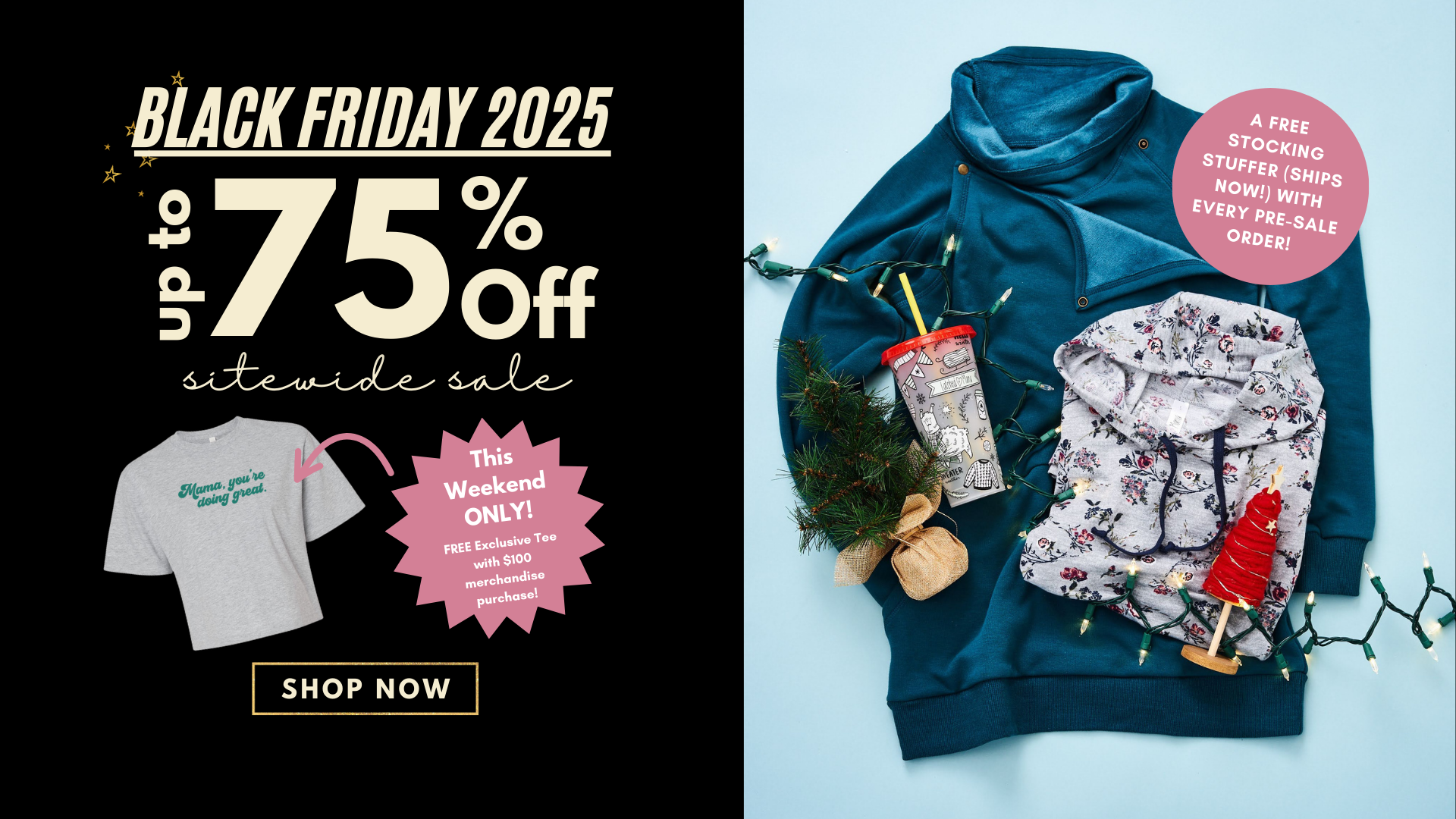 "You guys always take things one step further than I think you will. Like "we have a brand that is comfy, cute and affordable. It makes you feel like a human. Oh, and we give lots of free stuff away. We personally answer questions. We have a podcast with real moms giving helpful advice." You guys totally could have stopped at the clothes. I'm so glad you didn't. Thank you for all the amazing things you guys do. You made a community in love. It's refreshing."