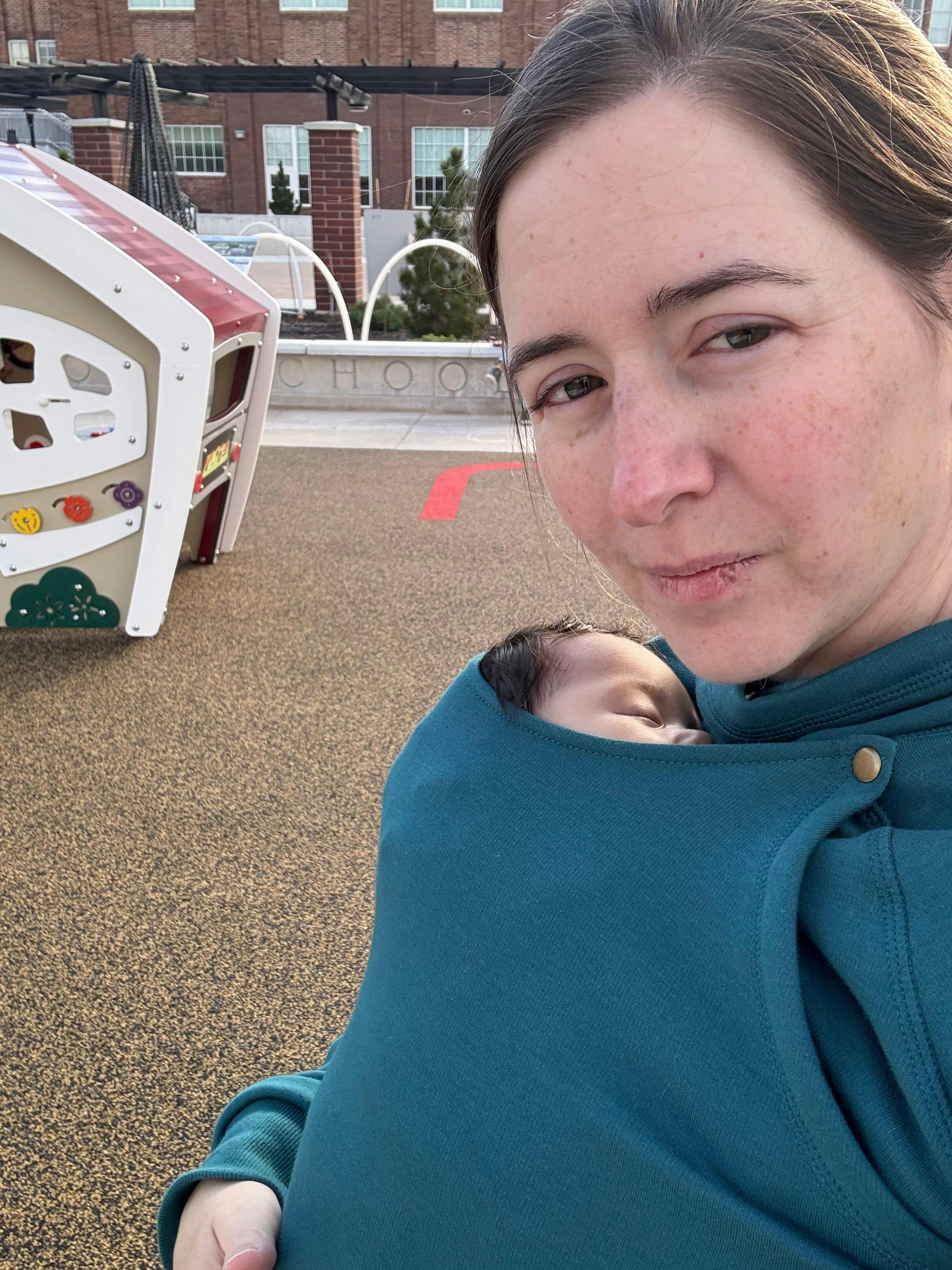 I’d been looking at the Harbor Snap for a while, but wasn’t sure about the price. I finally bit the bullet and bought the peacock color on pre order. I got it a week ago and have worn it about four times! The color is beautiful and it’s comfortable and warm. I took the advice of buying a size up for baby wearing. It’s a nice oversized sweatshirt when I’m not baby wearing and it’s the perfect size for wearing over the baby and wrap—keeping us both warm while my three year old plays. In fact, two different parents at the playground told me how cool it is to have a sweater shirt made to wear while baby wearing. It is also easy to nurse in. I also feel that I can continue to wear it after I’m done breastfeeding because its not a noticeably “nursing” top.