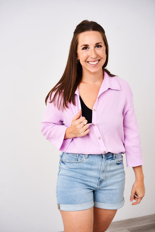 Latched Mama Coastline Cotton Button Up Nursing Shirt