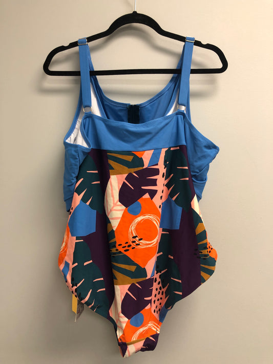 Outlet 7000 - Latched Mama Front Zip Nursing Swim One Piece with Pockets - Final Sale - Surf Blue/Golden Beach - 2X