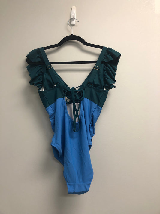 Outlet 7107 - Latched Mama Lace Up Nursing Swim One Piece - Final Sale - Ocean Teal/Surf Blue - Small