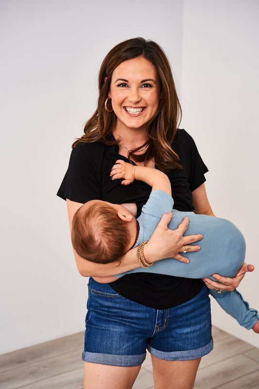 Cozy tops, layering tees, and long sleeves to carry you through crisp fall days! Easy nursing access and buttery-soft fabrics pair perfectly to create the warmest, most comfortable wardrobe for the season.