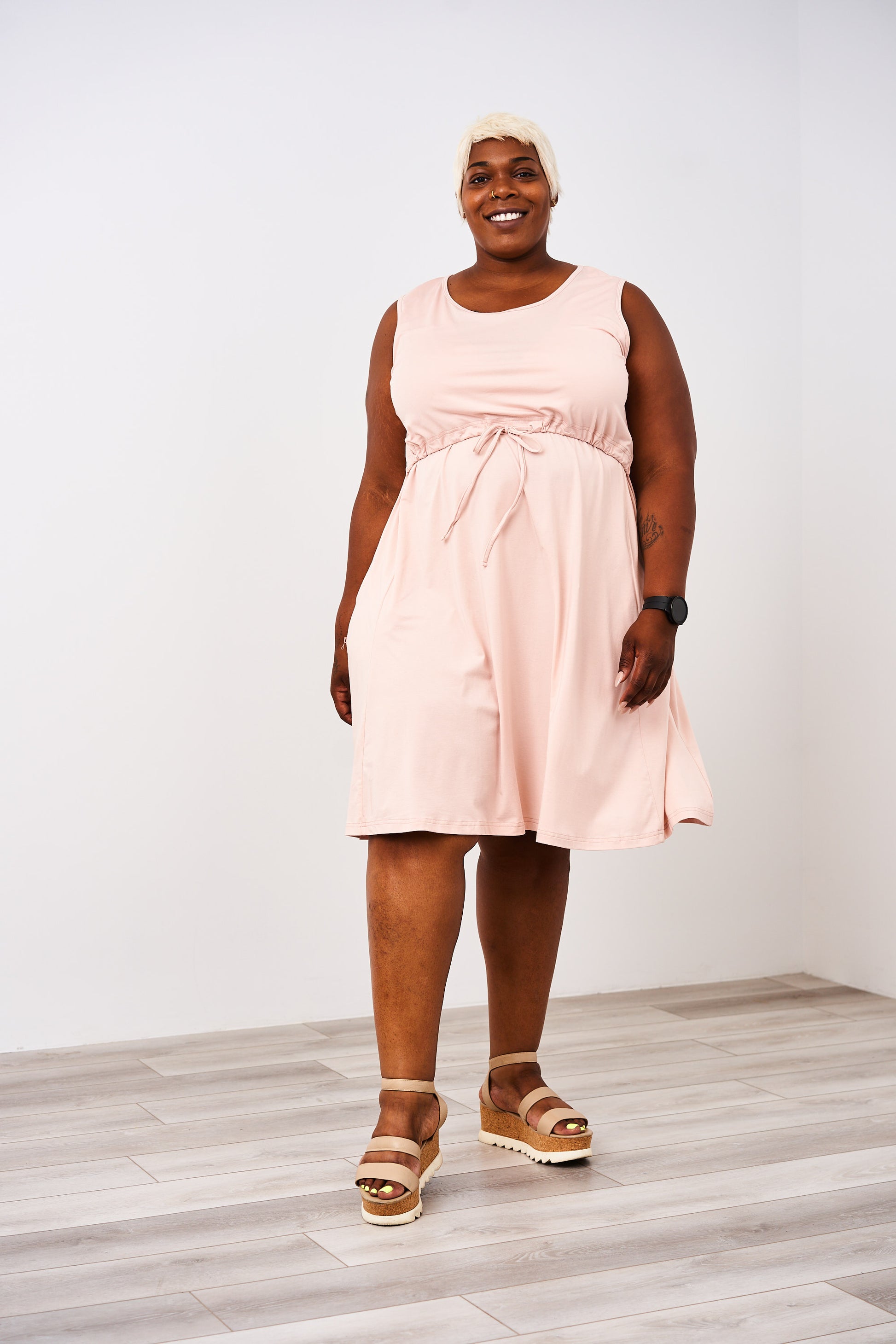 I love this one! The color (blush ) is so feminine and pretty! The fit, the function, and everything about this dress are exceptional. It is very convenient to nurse in it. The pockets round up my favorite features :) If you are looking for a cute dress for a warm season, look no further!
