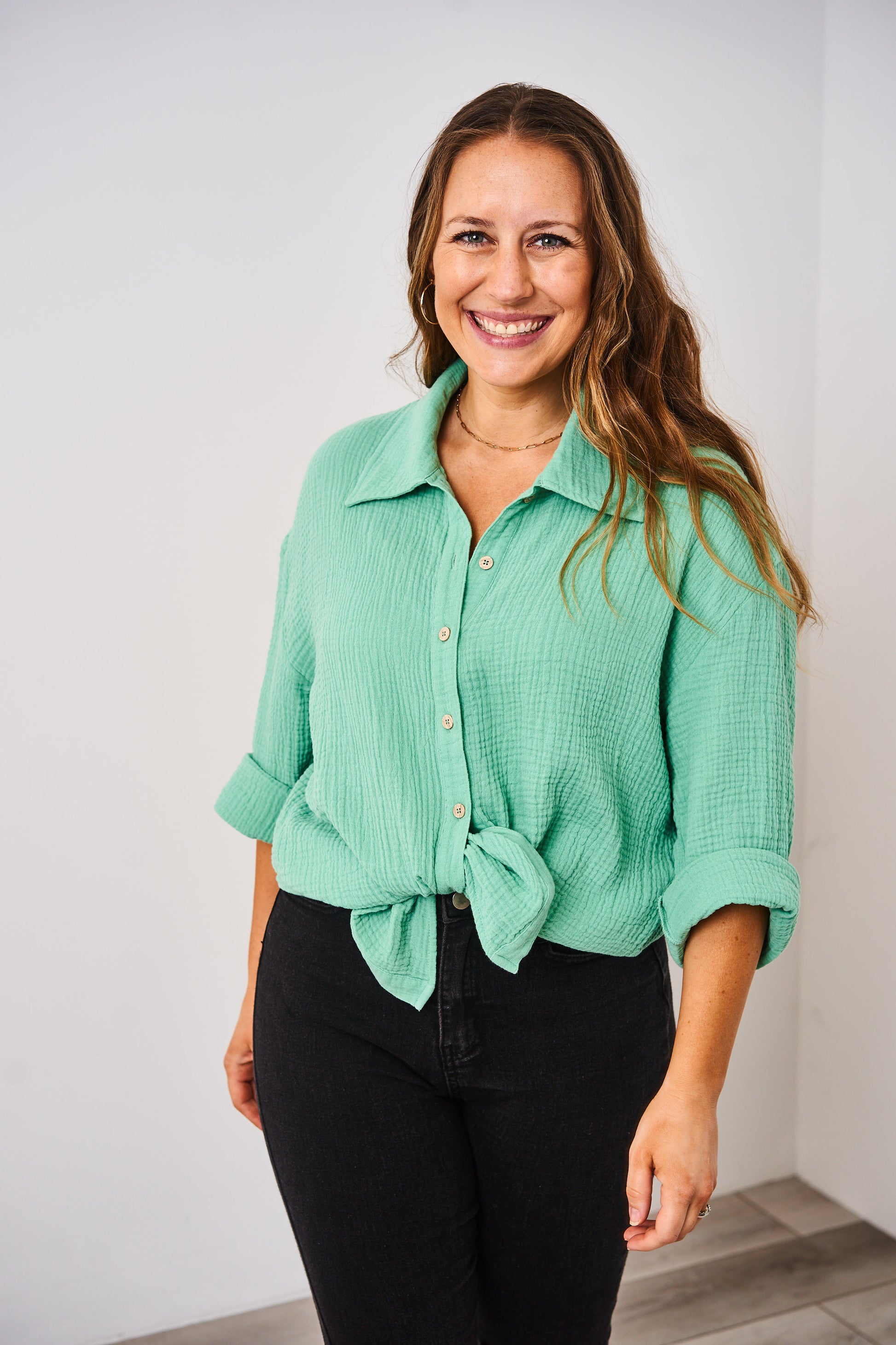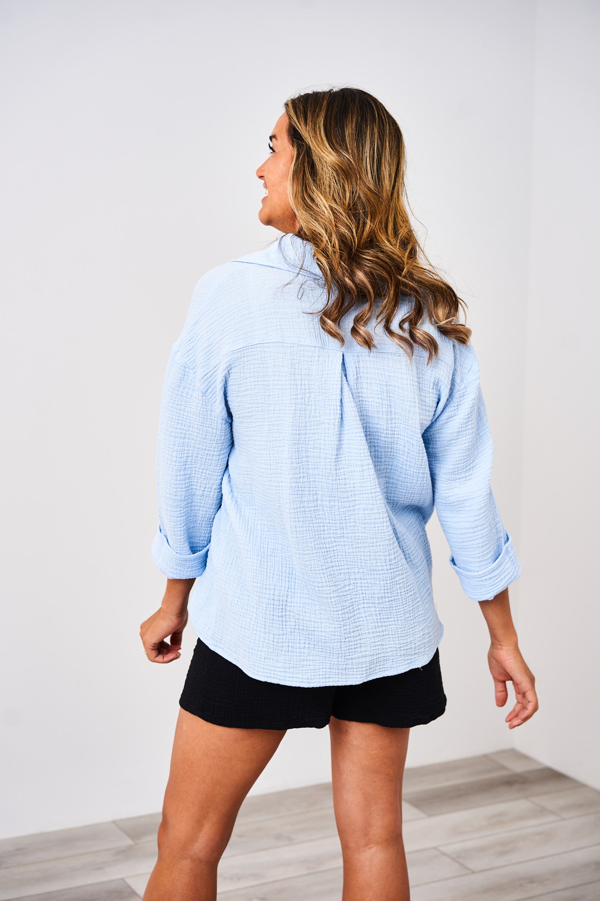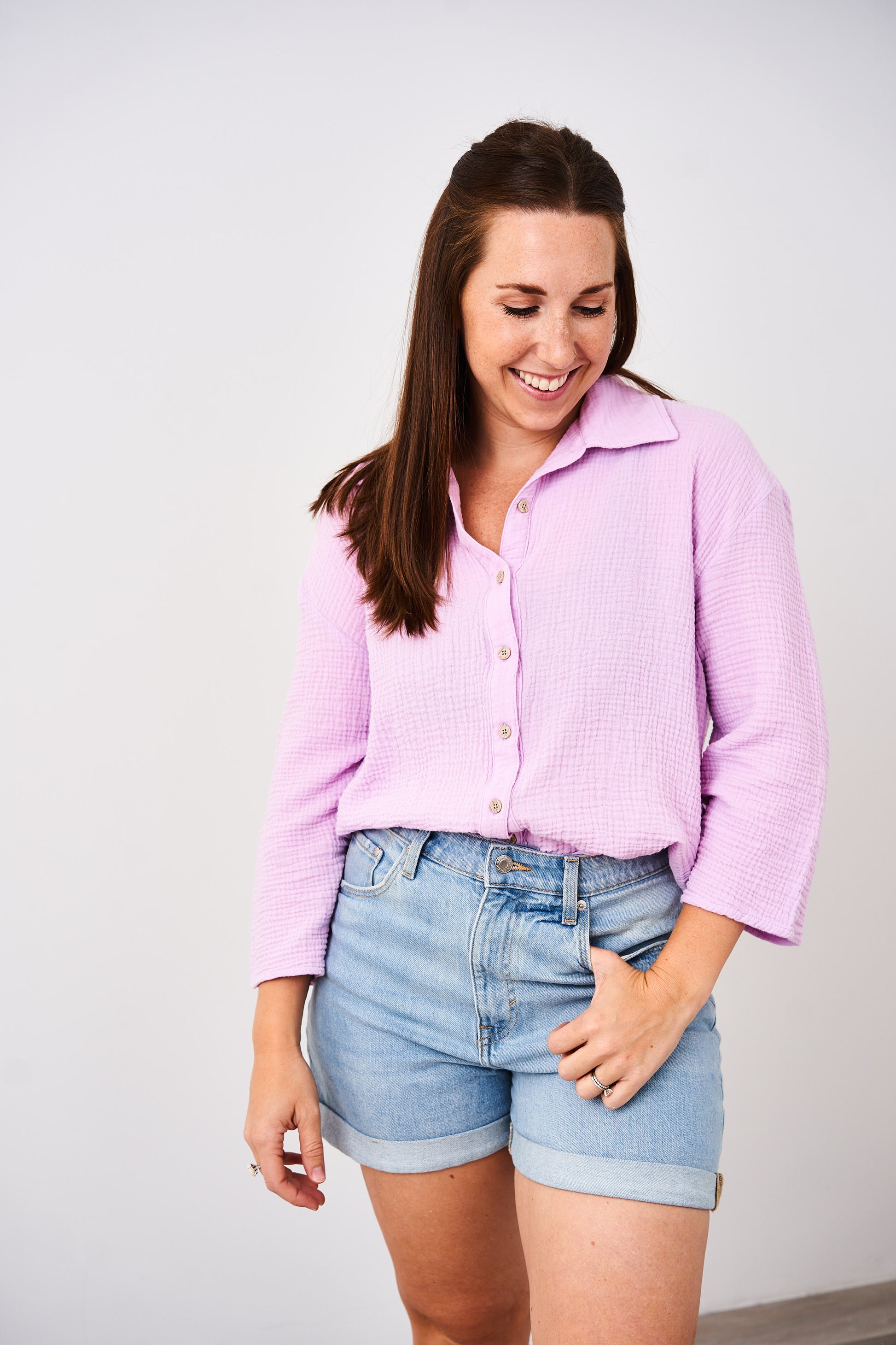 Whether you’re enjoying cool breezes or dreaming of sunny skies, our Coastline Cotton Button-Down top is the perfect trendy top. Effortlessly stylish and light as a cloud, this comfy top will have you looking and feeling your best from pregnancy to postpartum and beyond!