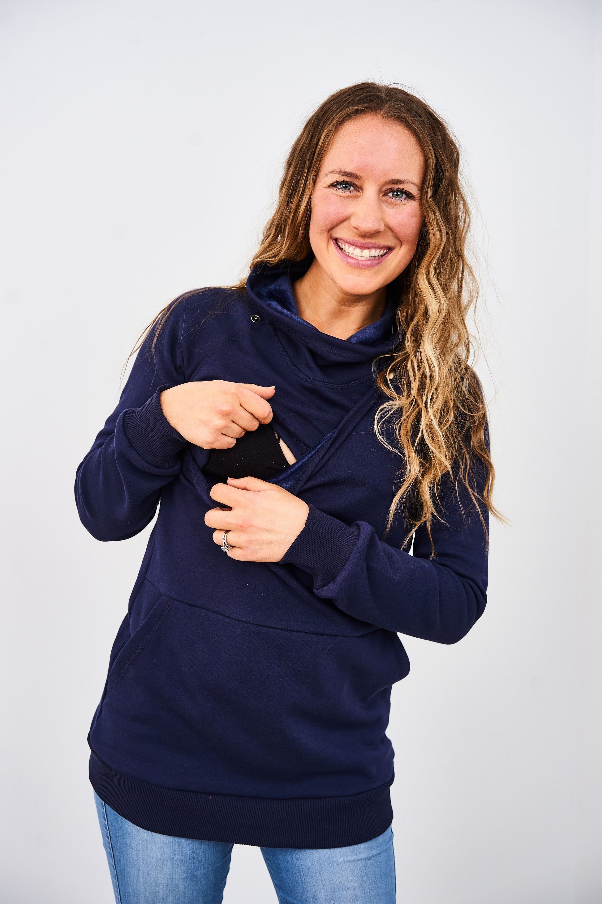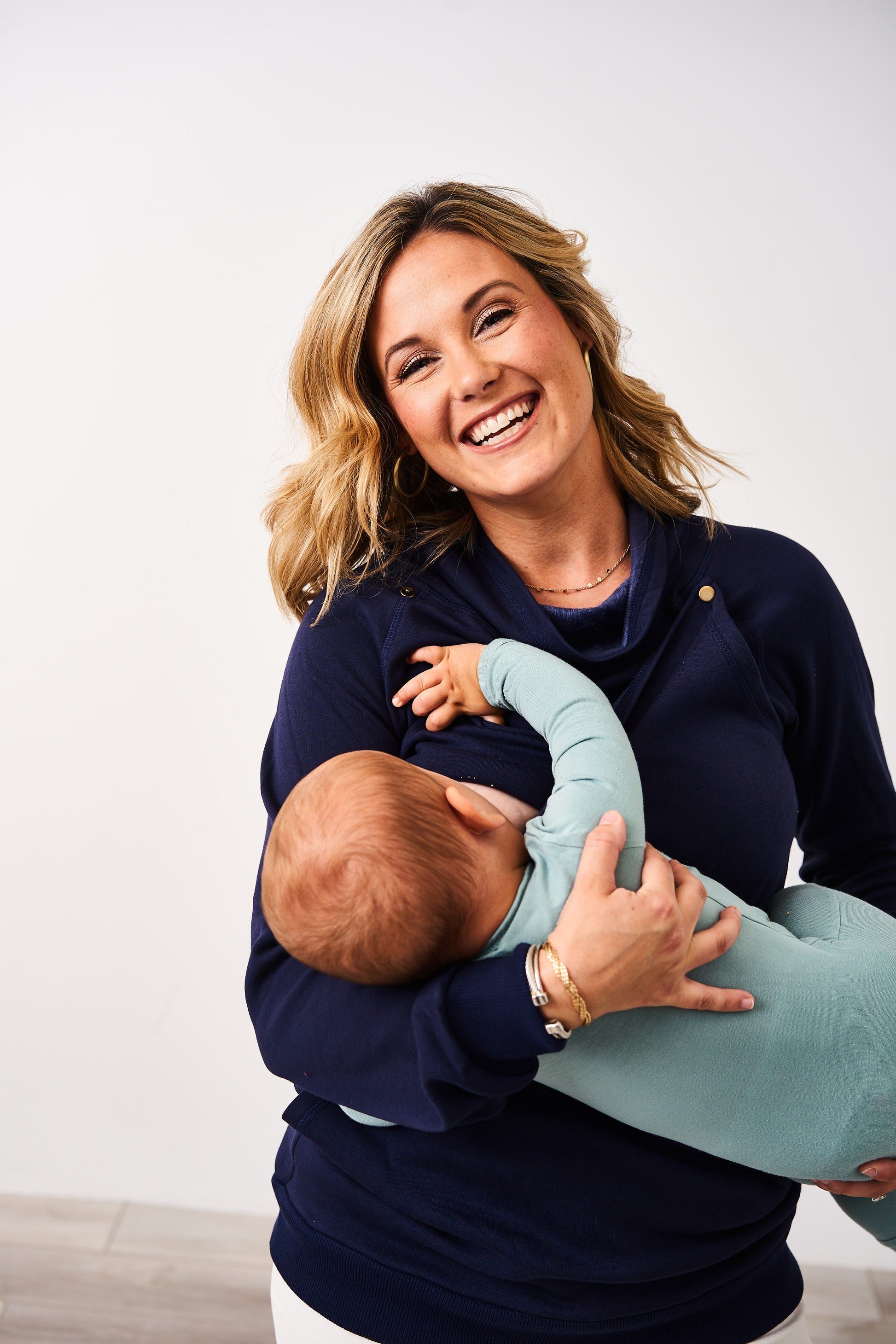 Thank you so much for sharing this, and we’re so happy to hear you’re loving your sweatshirt! We’re thrilled it’s keeping you cozy and making breastfeeding easier -- congratulations on your little one!