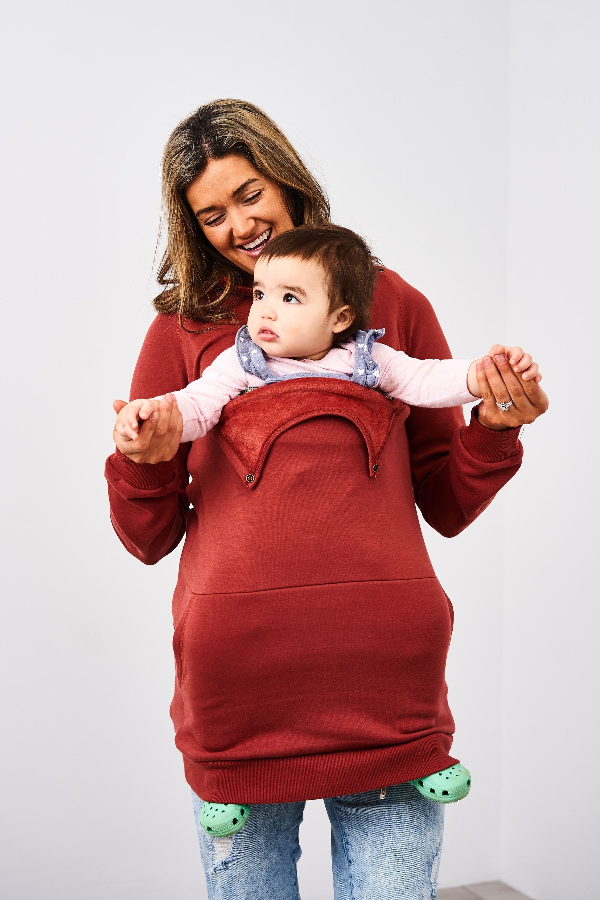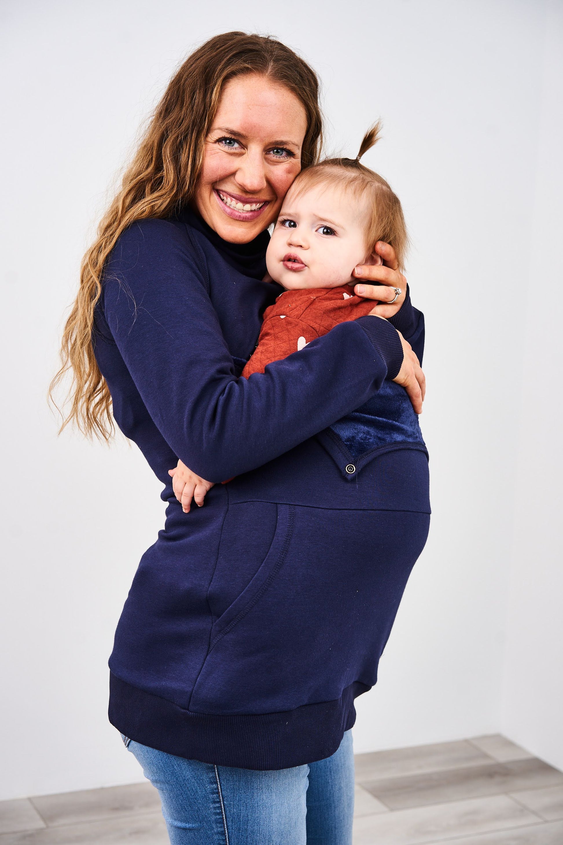 - Great for baby wearing! Wear this pullover over your favorite carrier to keep you and baby nice and cozy. We recommend sizing up 1-2 sizes for this purpose! **Note: this is not a baby carrier.**