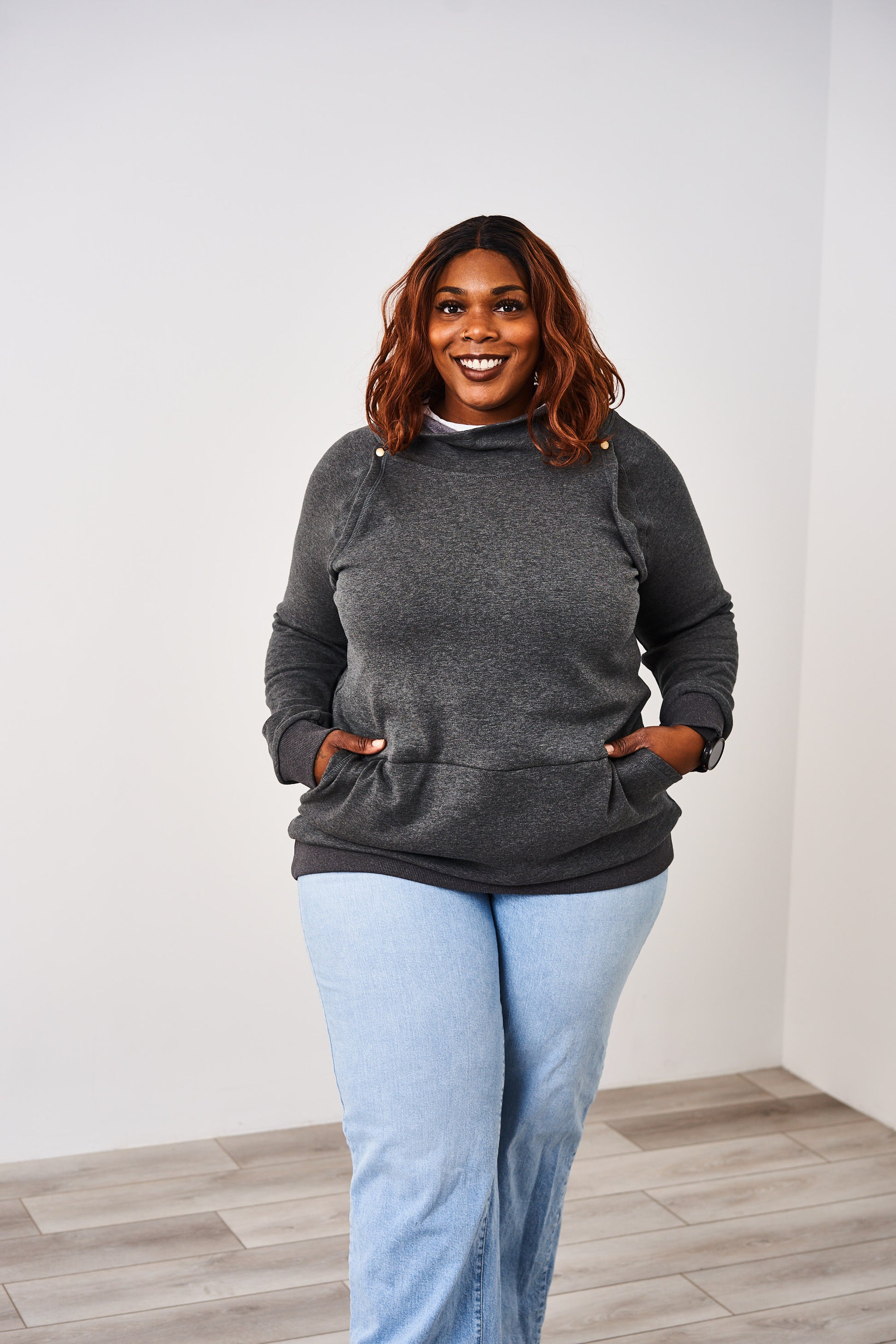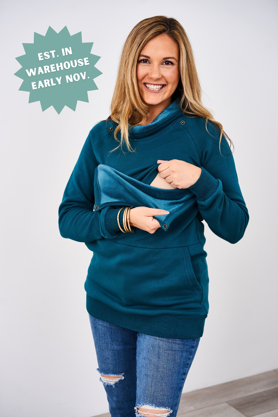Want to cozy up with one of our top selling items? Then our Harbor Snap Nursing Pullover is for you! Featuring the same fleece lining as our fan-favorite Heavy Hoodie, this thick and durable sweatshirt was designed to help you get ready in a snap! We know that bundling up can be tricky as a breastfeeding or babywearing mama. That’s why we’re SUPER excited to introduce the comfort and convenience of our NEW snap-down, lift-up nursing access. Our top pick for cold-weather feeds!