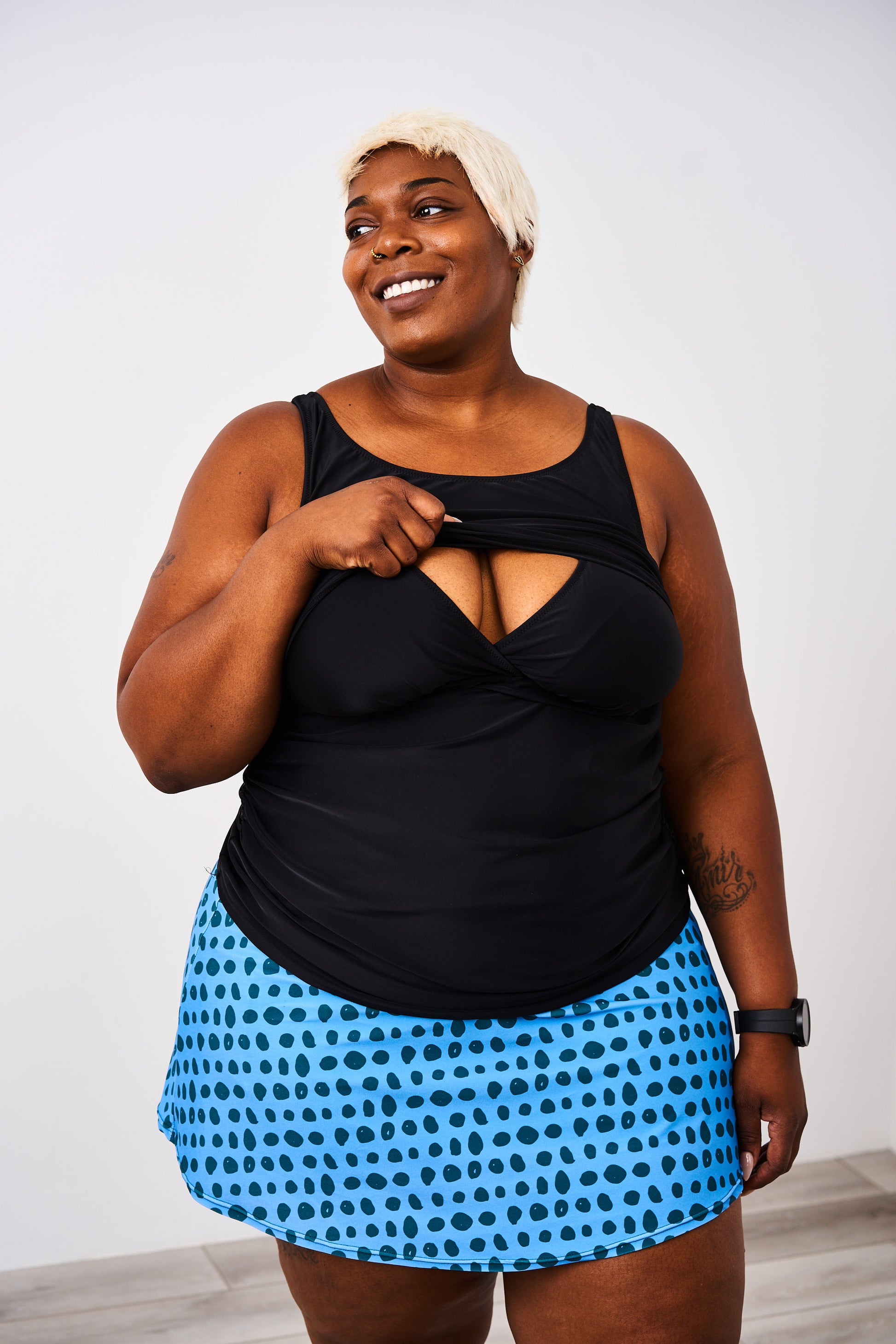 Chic and modest tankini top that allows me to easily nurse while at the beach or out on the boat without having to use an extra coverup, since the nursing holes are discreet and convenient. Perfect!!! Bought it for my 5th baby because we're on the water all the time - so it's a necessity.