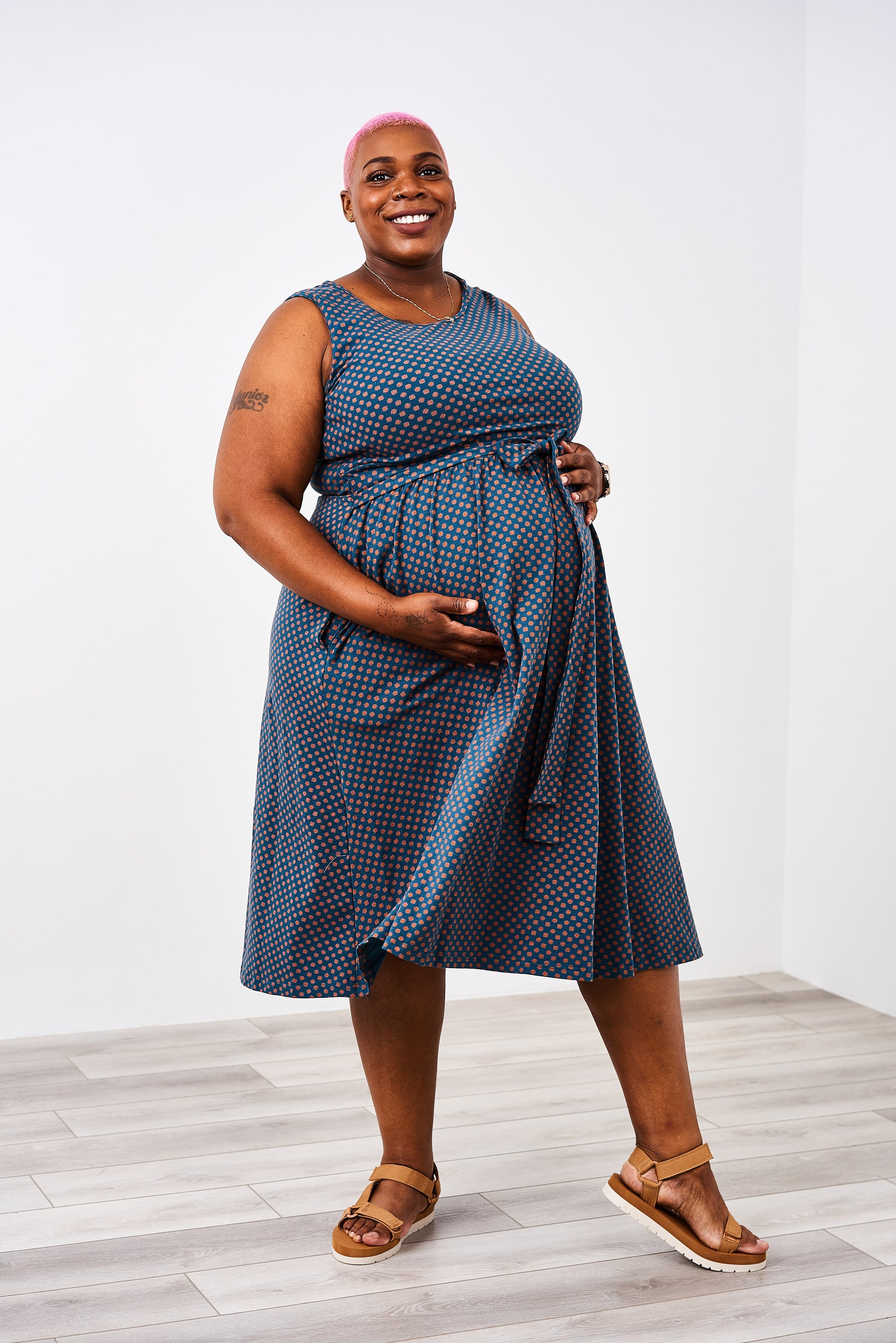 I love this dress!!! It’s one of my favorite, I love the fit and the fabric, I wish the Blue Bauble one comes back in stock in size XS, I really like this dress, and I plan to use it even after my breastfeeding journey.