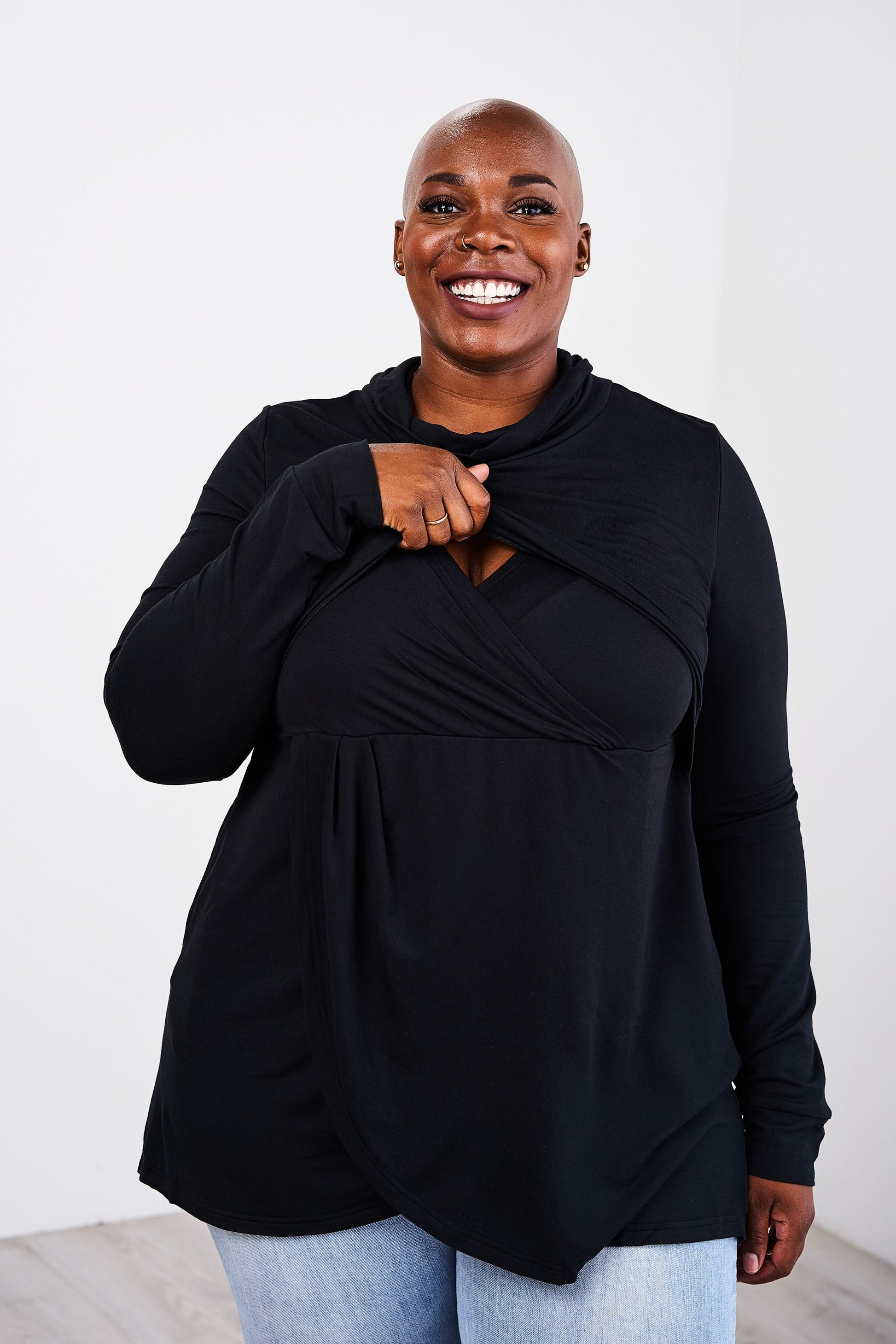 - Flattering on larger busted women & all body types.