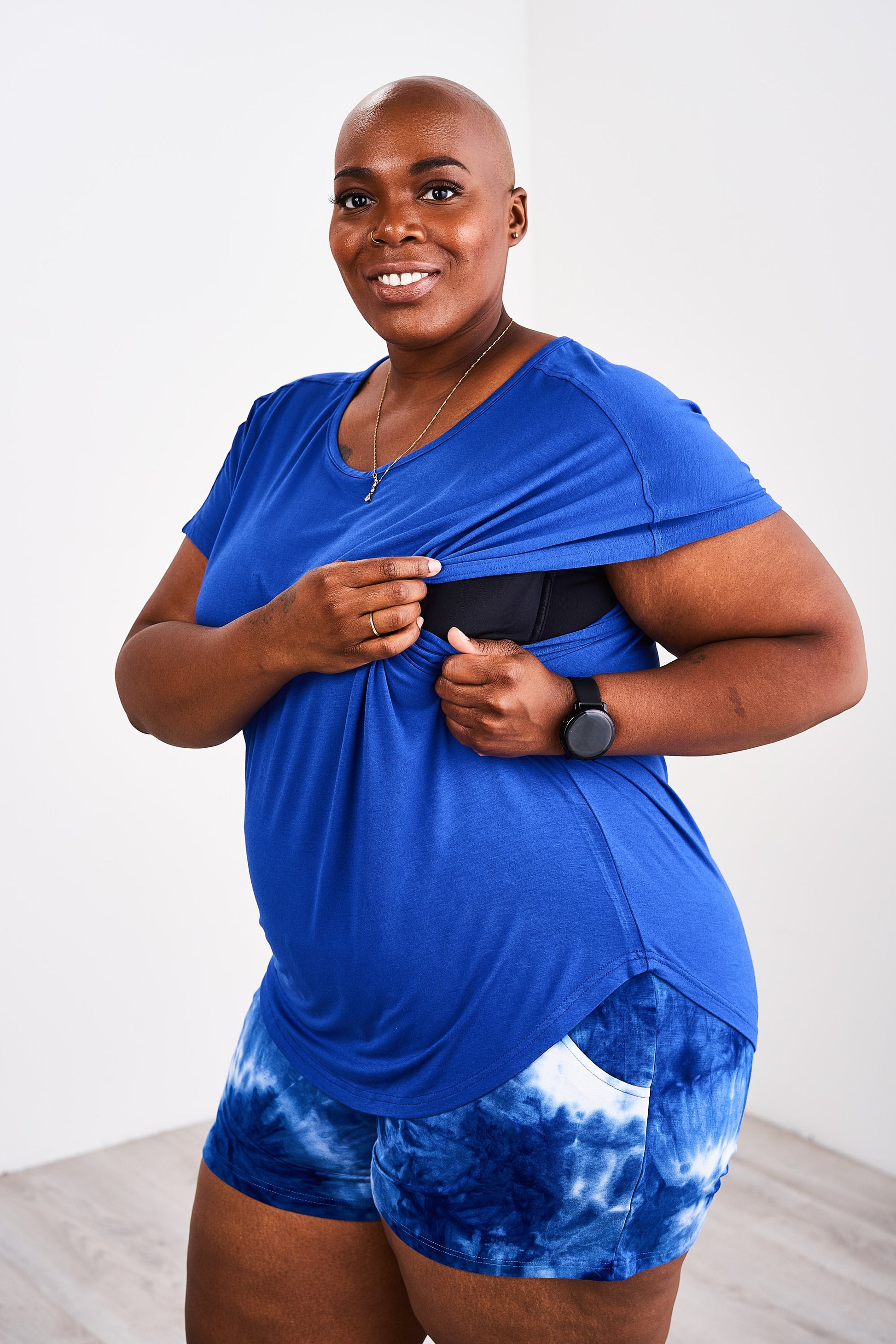 These shorts were my go to for pregnancy bottoms. The waistband is soo perfect that it stretches over your bump so easily. Other shirts and pants would cut off circulation as a side sleeper in my legs as I got further along (sciatica was horrible!), but these I could wear all 9 months with twins! And don’t get me started on the side access top with newborns. I can tandem feed or switch sides easily in the night half asleep without getting cold or fumbling through layers. I don’t leave the house much these days but if I did, I can easily knot the bottom or wear the shorts to the pool, target, you name it! 10/10!