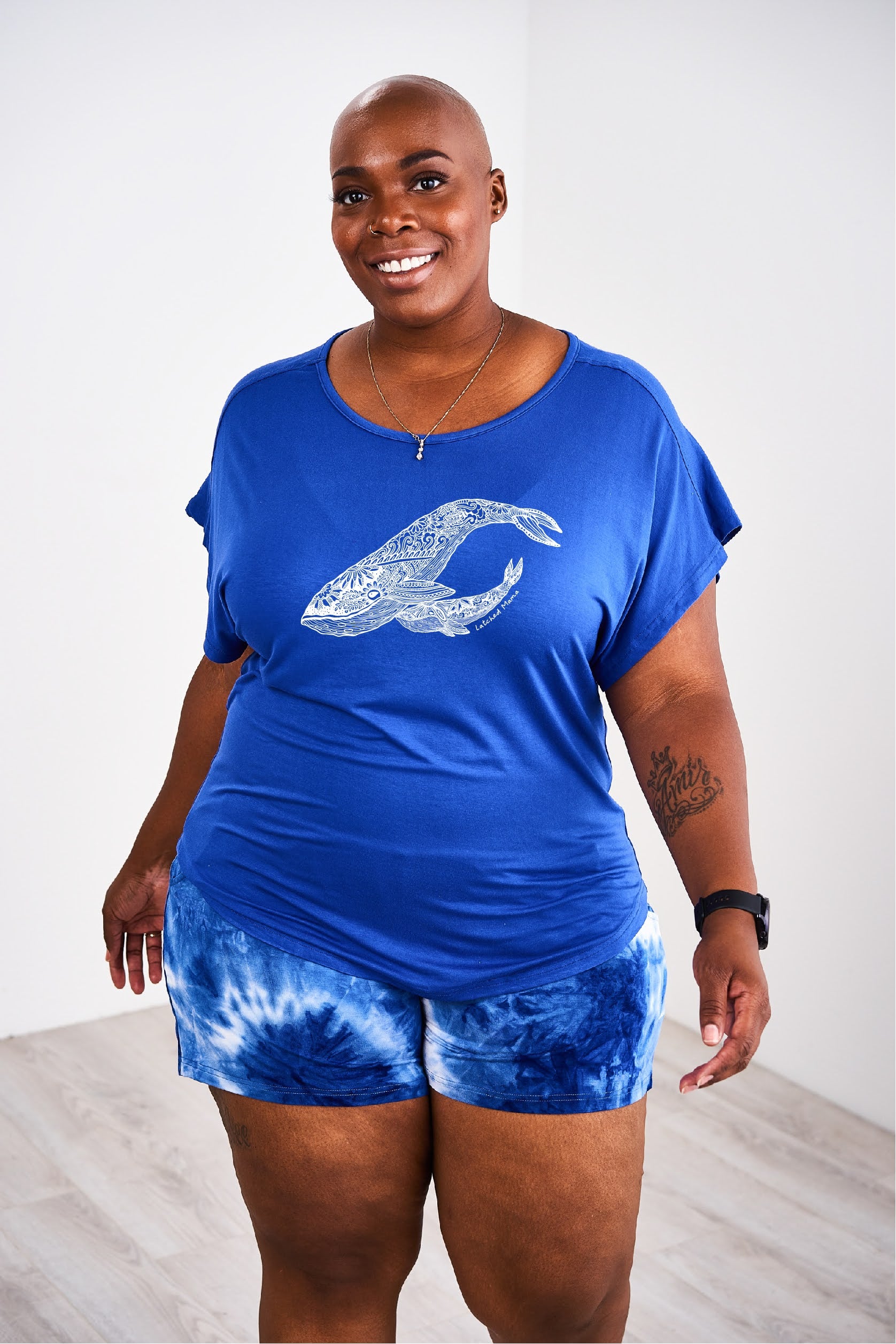 - Brittny is 5'8", 260 pounds, chest size 44/DD, and wearing a 1X in Navy English Garden and Ice Breaker.