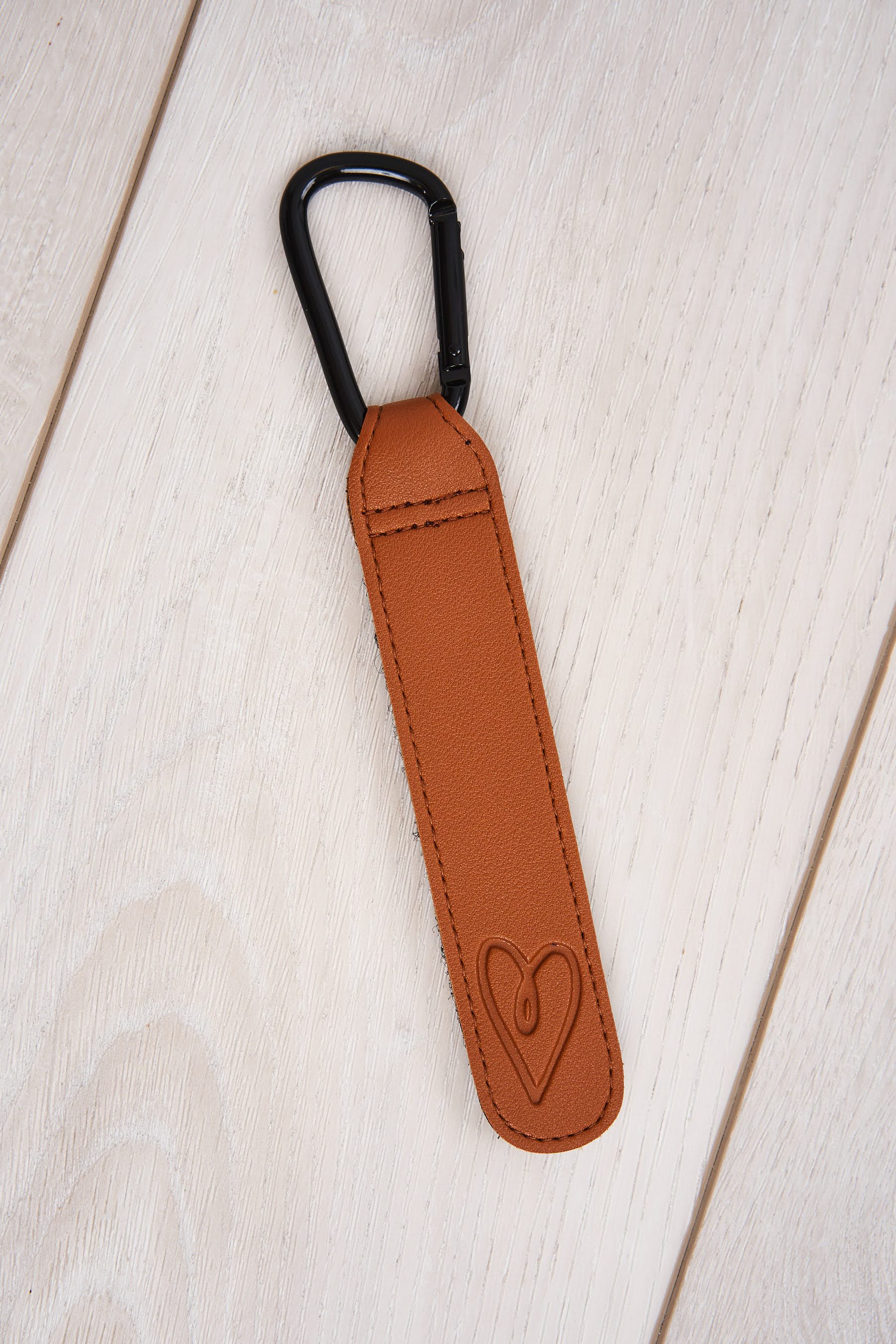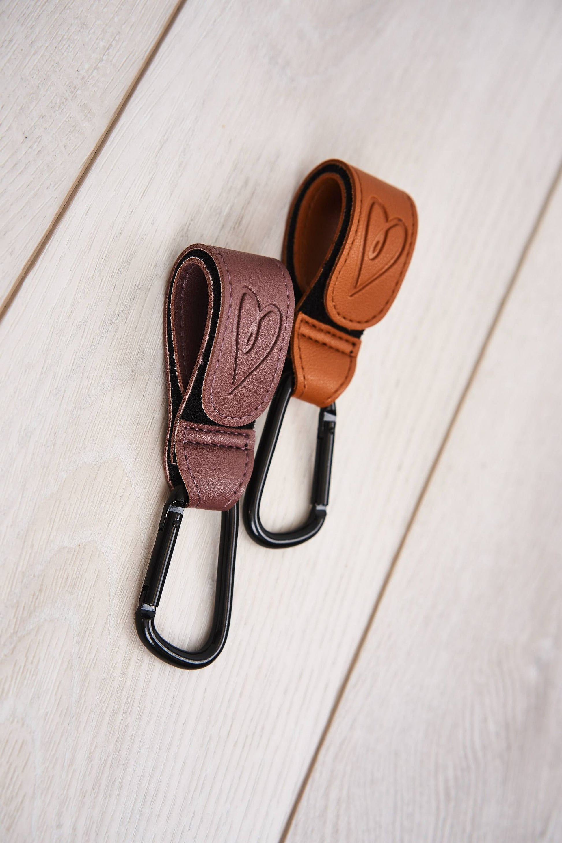 As parents we oftentimes have our hands full! That's why we created our new multi-use stroller hook! Available in two colors, Tan and Brown, this stroller hook is made of vegan leather and has a sturdy carabiner, making it the perfect multi-use tool to carry keys, water bottle, toys, etc! Simply wrap around your stroller handle, backpack, belt loop, bicycle and attach anything you or your baby needs an extra hand carrying!