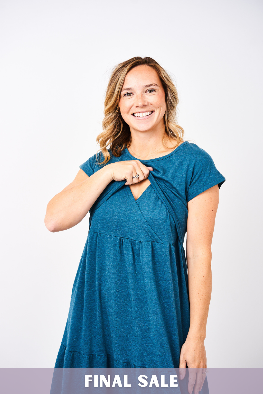Want to follow the tiered dress trend, but need easy nursing access? Our new Tiered T-Shirt Maxi Dress is exactly what you’ve been searching for! With ice cream dream color options, you’ll never want summer to end. Our simple, lift-up nursing access and lightweight fabric will make those hot days a little cooler!