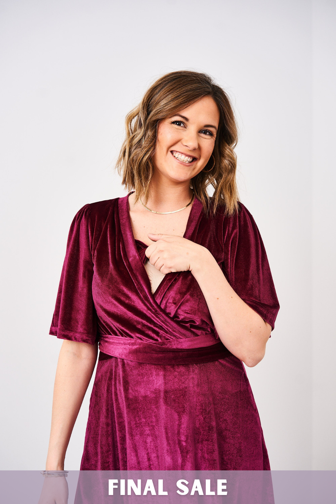 Our gorgeous velour dress is back and better than ever, with a very merry makeover! Flaunting a playful shorter length and charming gathered sleeves, this beauty guarantees you’ll be the star of every gathering this holiday season. Beyond its stunning style, this dress seamlessly combines fashion with function, offering discreet nursing access. Plus, it’s maternity-friendly and designed to join you effortlessly on your journey from pregnancy to postpartum and beyond.
