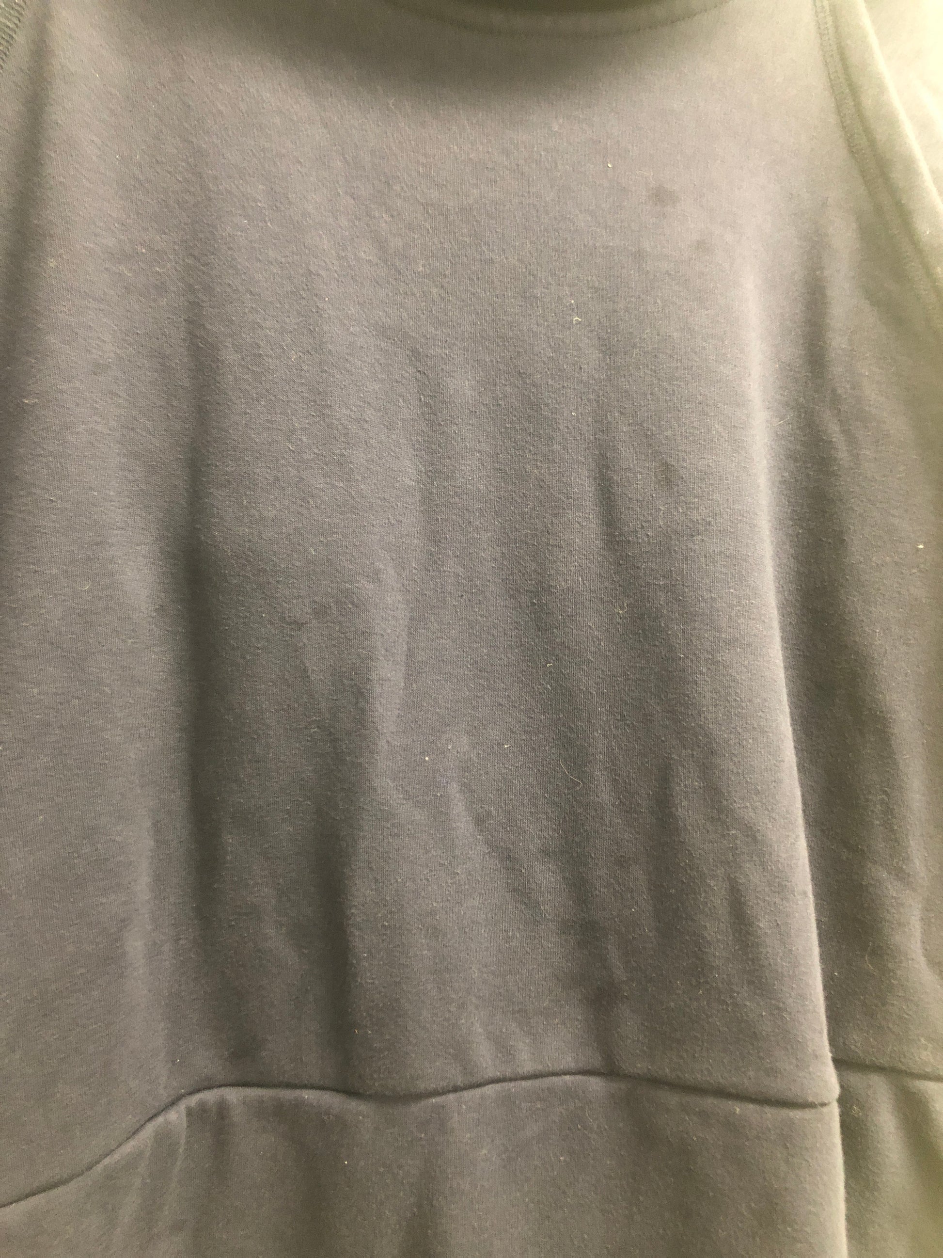 This item has been worn and has stains on the front of the garment.