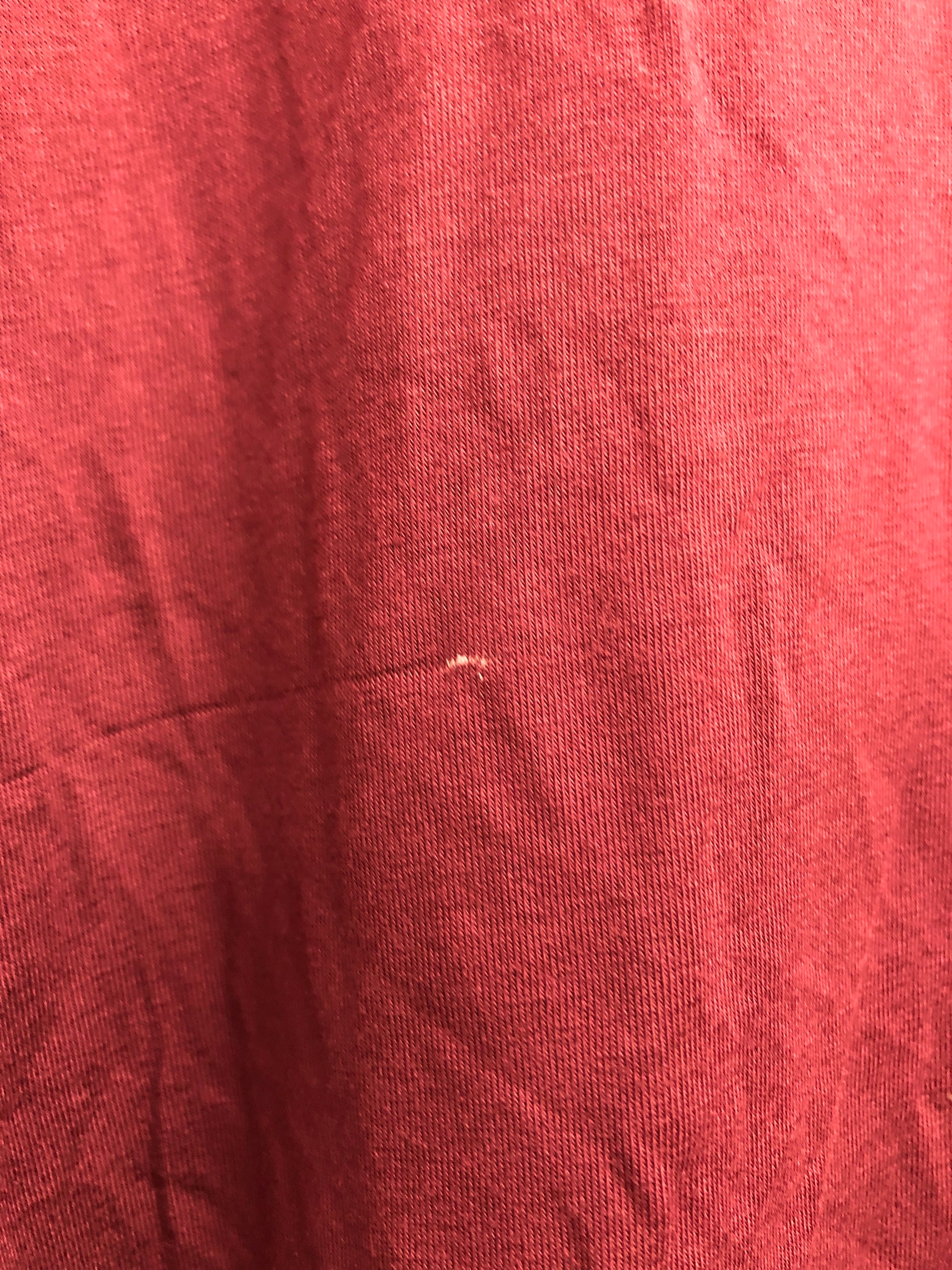This item has been washed and has a small fabric imperfection on the front of the garment.