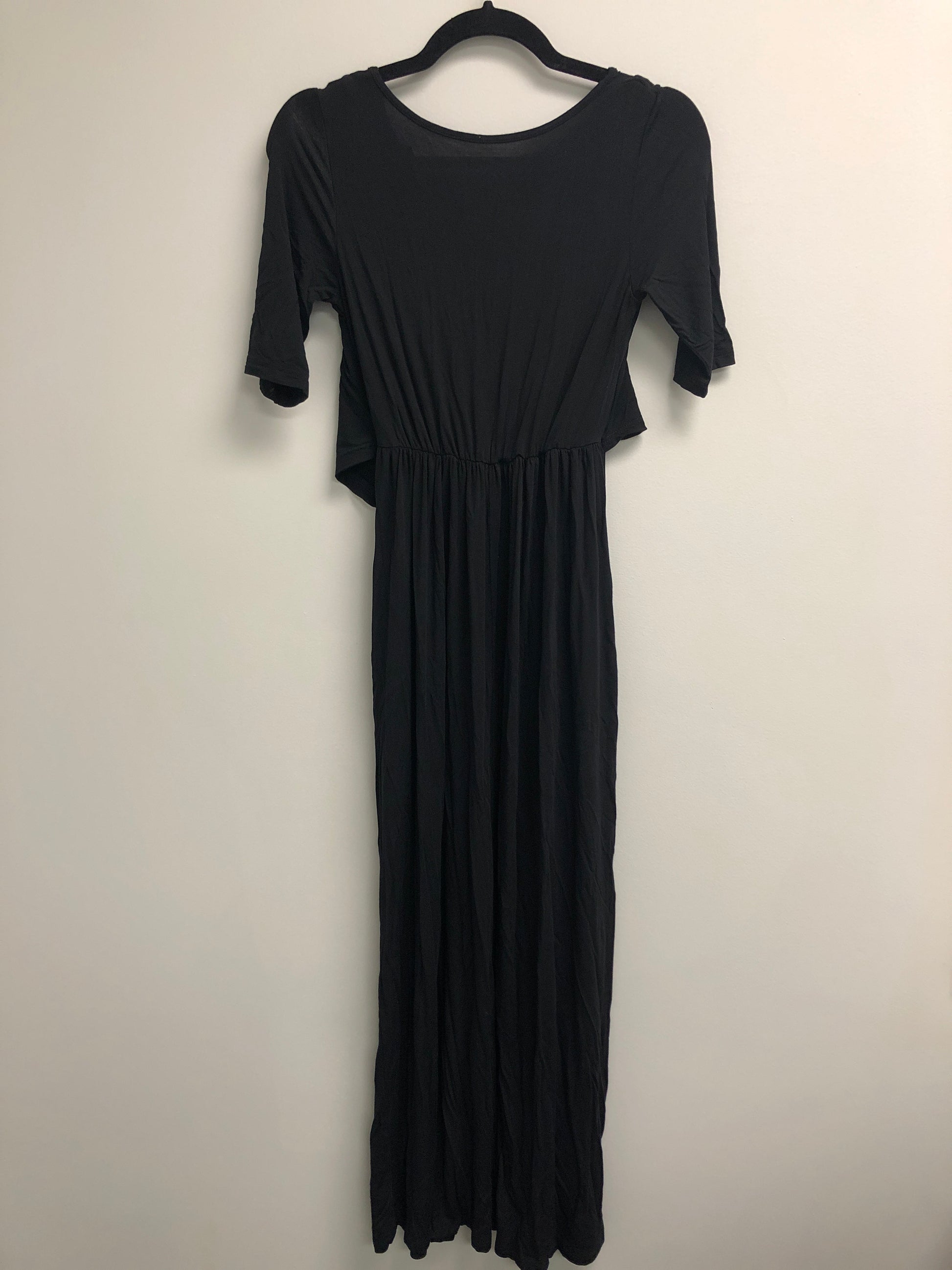 Outlet 7025 - Latched Mama Front Knot Nursing Maxi Dress - Black - Extra Small