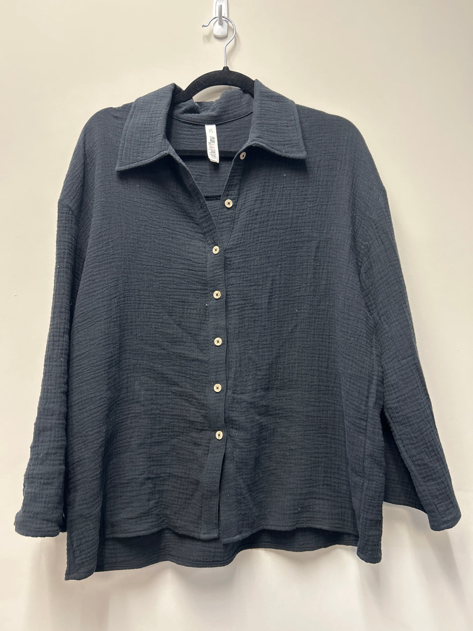 Outlet 7282 - Latched Mama Coastline Cotton Button Up Nursing Shirt - BLACK - Extra Small